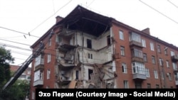 Фасад пятиэтажного жилого дома рухнул в Перми рано утром в субботу.